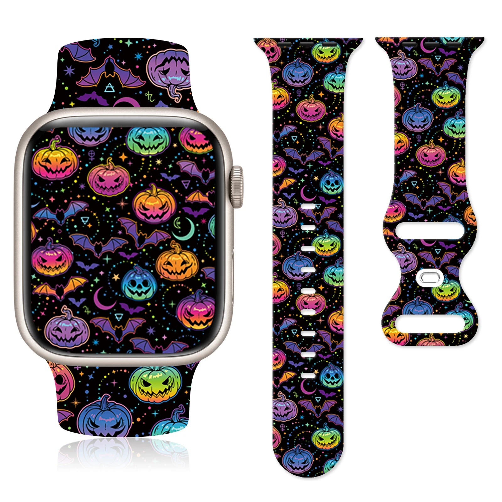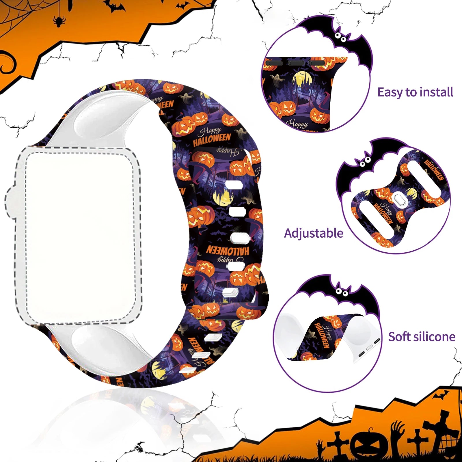 Celebrate the festive season with this Halloween pumpkin design silicone watch band. A fun and stylish replacement strap, perfect for adding seasonal charm to your smartwatch.