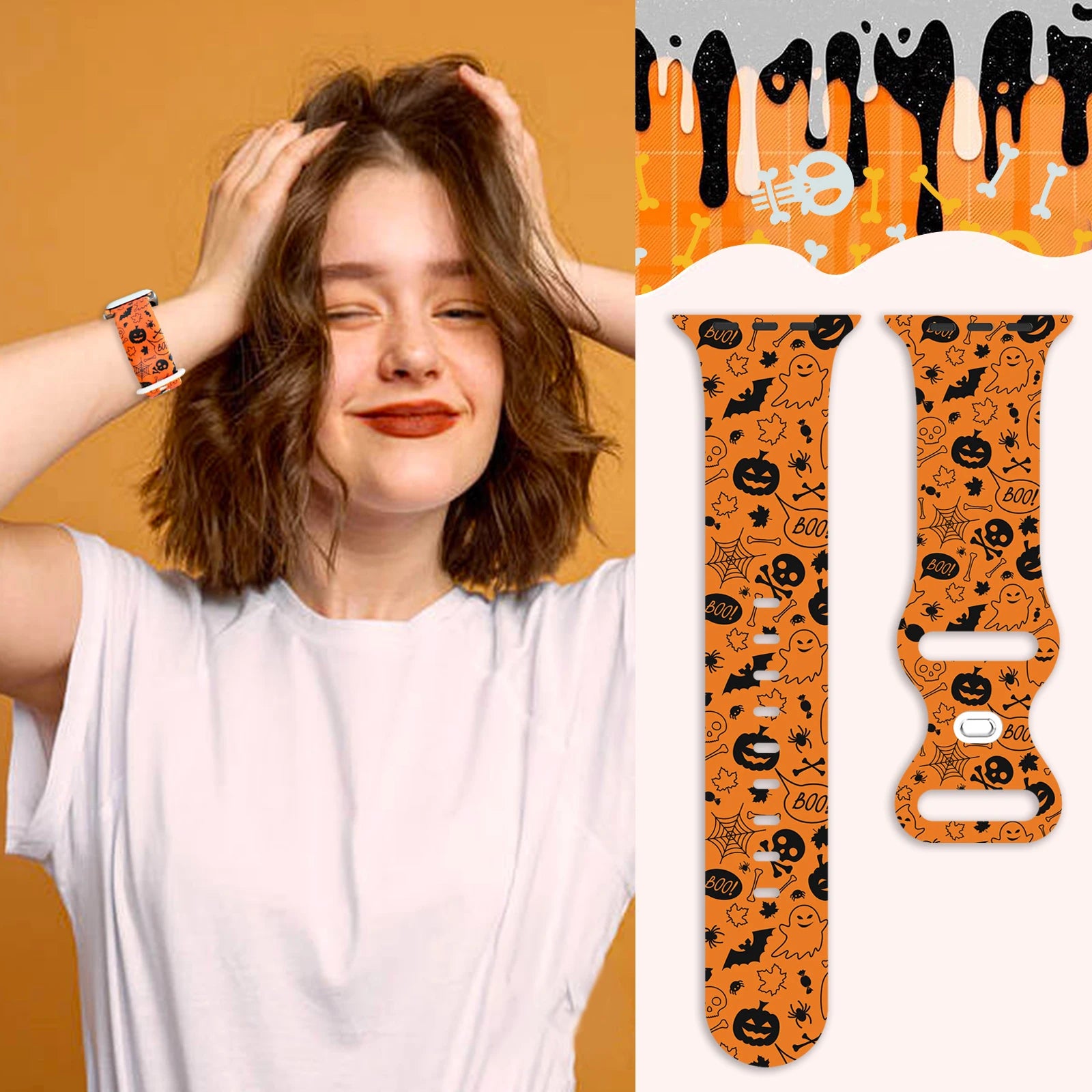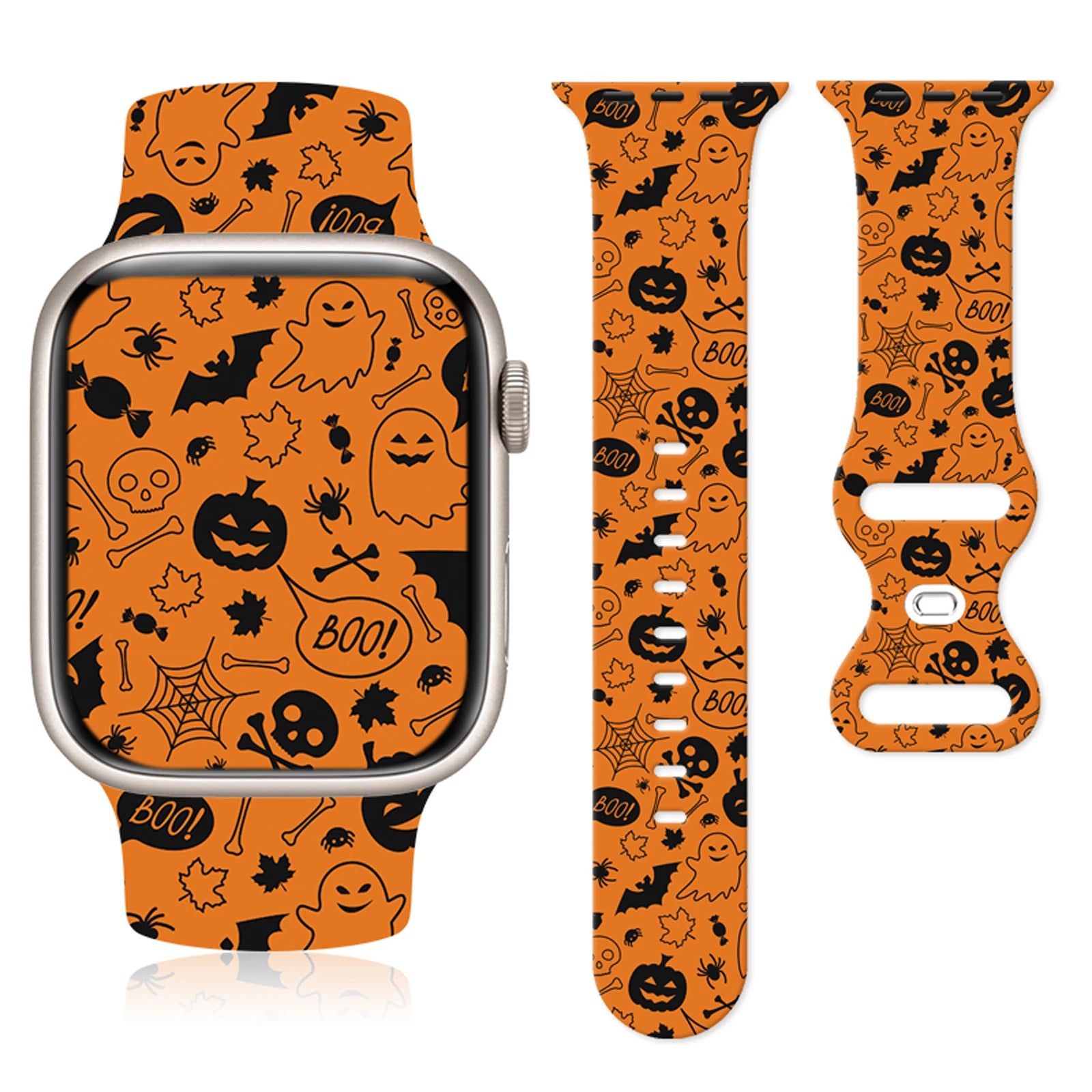 Celebrate the festive season with this Halloween pumpkin design silicone watch band. A fun and stylish replacement strap, perfect for adding seasonal charm to your smartwatch.