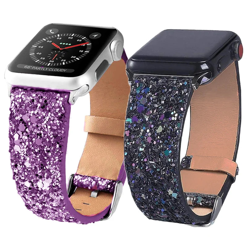 Add sparkle to your smartwatch with this Glitter Leather Watch Band Collection.