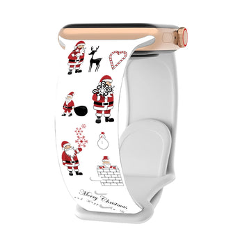 Celebrate the holiday season with this festive silicone smartwatch band, designed with cheerful Christmas patterns such as Santa, snowflakes, and reindeer.