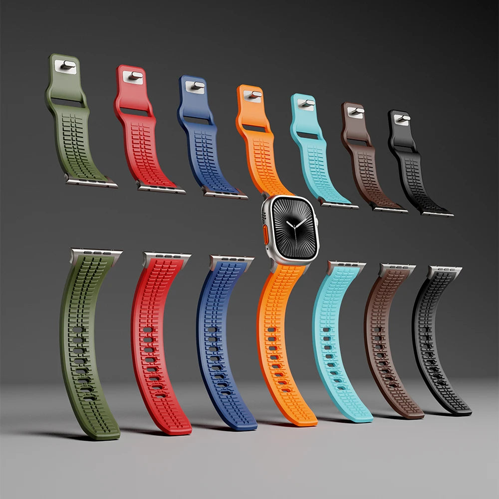 Experience comfort and durability with this rugged silicone sport band, designed for both everyday wear and outdoor adventures. Its breathable pattern, sturdy clasp, and smooth finish make it the perfect combination of strength and style.