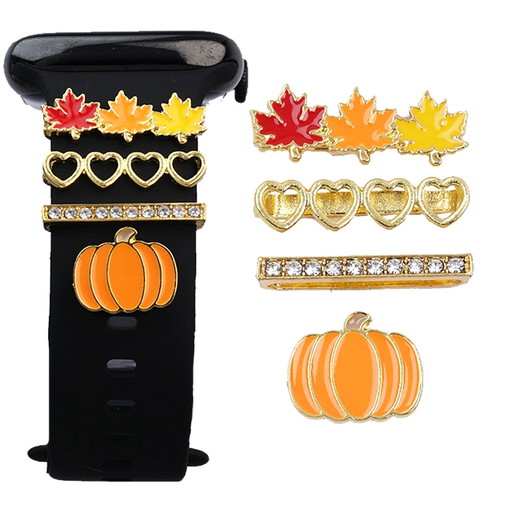 Autumn Pumpkin & Maple Leaf Decorative Charms Set for Watch Band